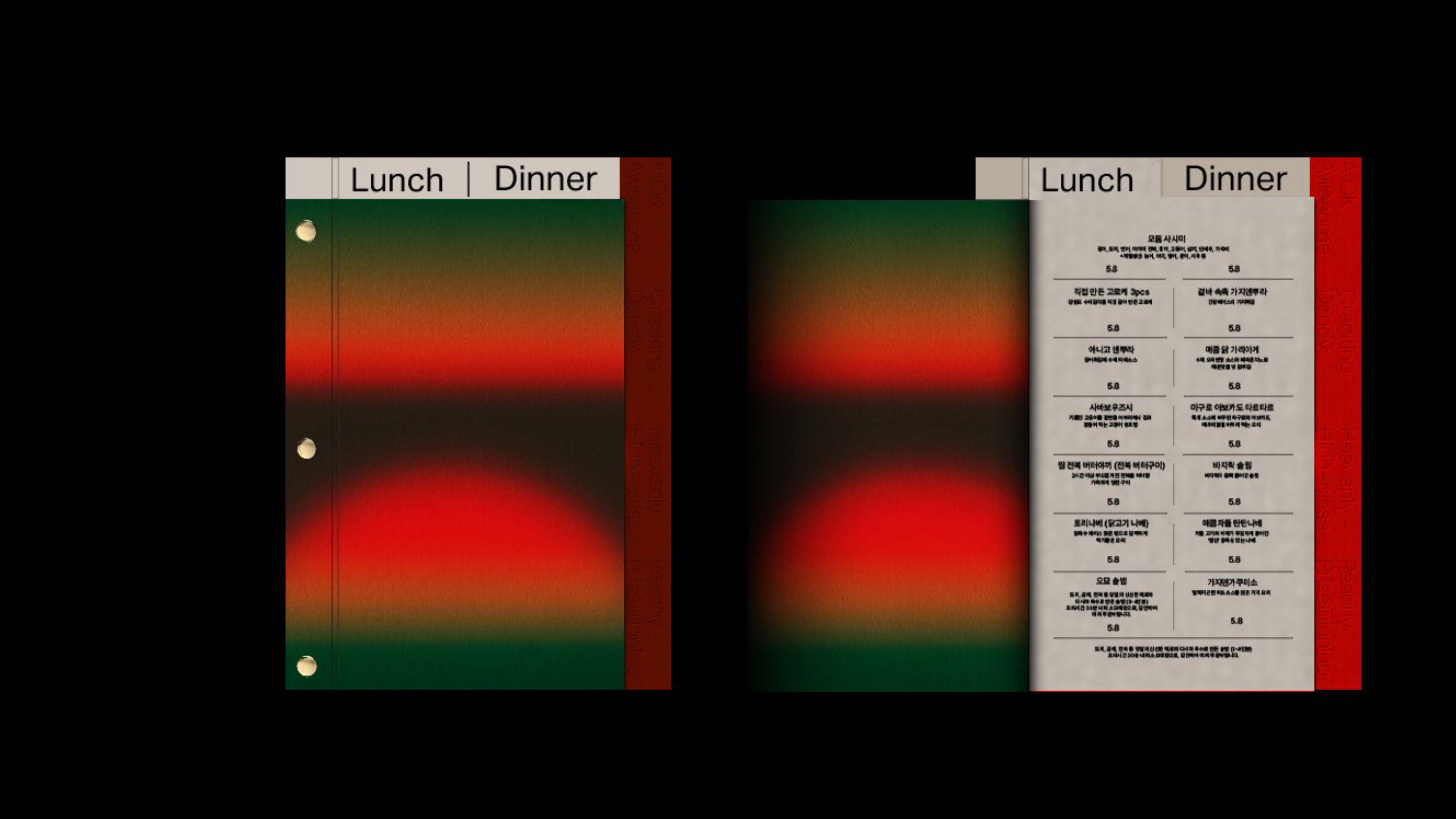 일식 레스토랑 오묘의 브랜딩은 단어 자체가 자아내는 심미적인 분위기를 시각적으로 재현해 내는 것에 집중했다. 특정한 형태나 조형 디자인을 최대한 배제하고 사람들의 기억 속에 강한 잔상을 남길 수 있는 컬러 그라데이션을 사용해 오묘함을 극대화 하고자 했으며, 오묘가 추구하는 미묘한 맛의 디테일과 연결시켜 미각의 경험을 시각적으로 확장시키는 것이 중요한 과제였다.
